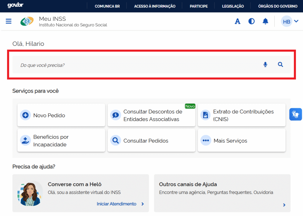 Buscar serviços pelo Site Meu INSS