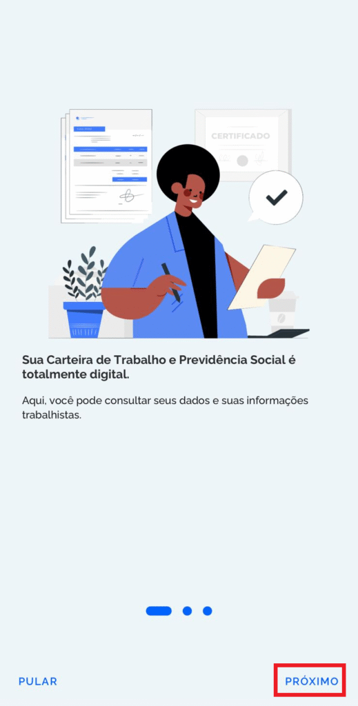 2. Baixe o aplicativo “Carteira de Trabalho Digital”: Disponível na Play Store (Android) e App Store (iOS).