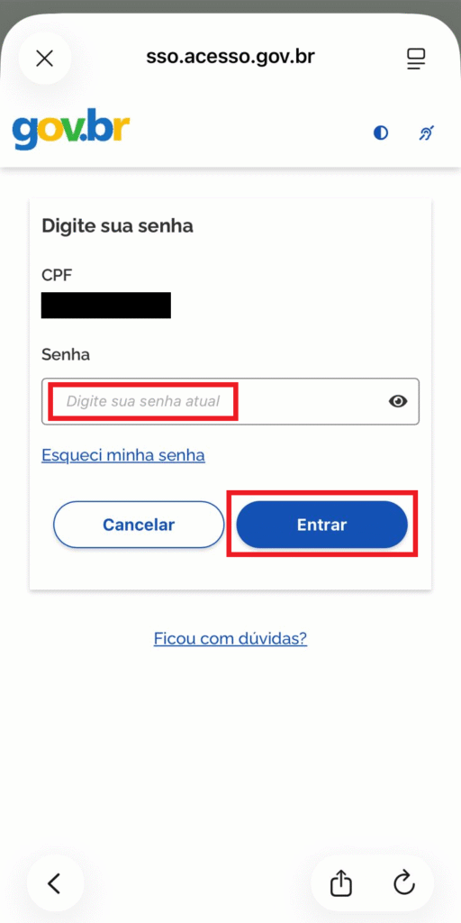 3. Acesse a sua conta Gov.br: Basta fazer login usando seu CPF e senha cadastrados.