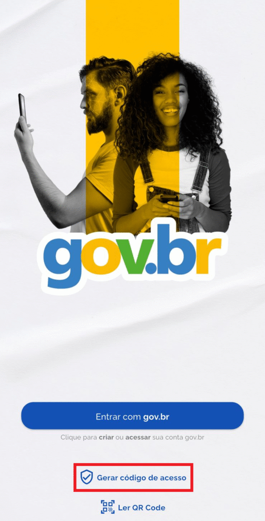 O Código de acesso é criado em outro aplicativo: gov.br