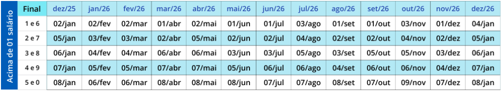 As datas de pagamento podem ser verificadas nas tabelas que disponibilizamos acima.